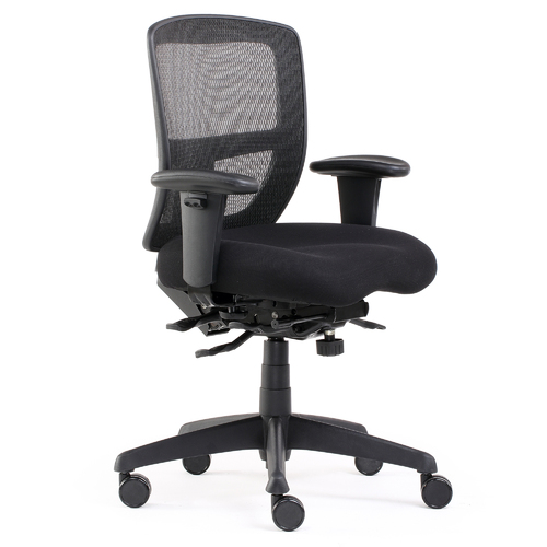 Seat Size 540W x 485D Back Size 440W – 520H Chair Height to Back 895mm – 985mm Chair Height to Seat 455mm – 545mm Seating Time 8 hrs+ Carton Size 693 x 458 x 660 Carton Weight 26.4kg User Weight Rating 150kg Available Colours Blackk