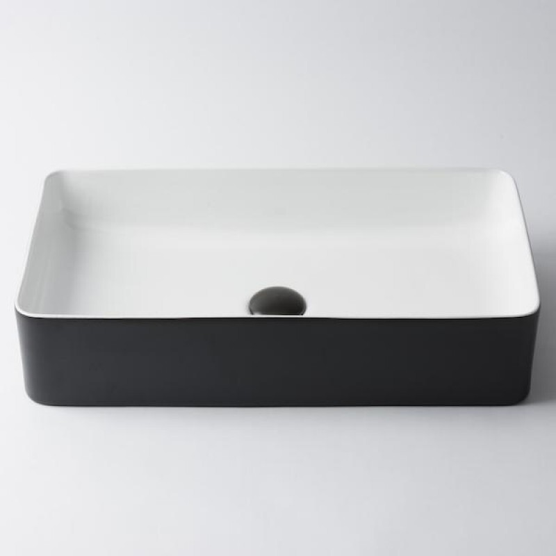 Ostar Bathroom Ceramic Basin 650mm Above Counter White Matte Black WD313