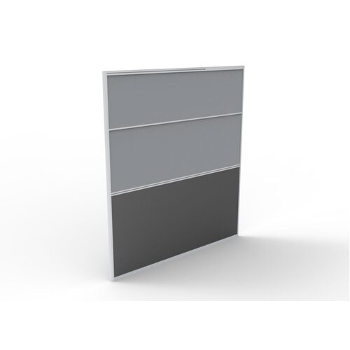 The slimline 30mm deep Rapid Screen is easy to assemble, pinnable with fabric upholstery above desk height and charcoal melamine under the desk to minimise wear.