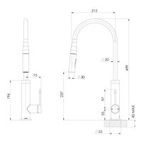 Product Features Dual function, pull out hand piece with switch Fixed pin lever 220mm swivel spout for enhanced functionality 25mm ceramic cartridge with 15 year warranty Available in 3 finishes Durable, high quality finish Designed in Australia