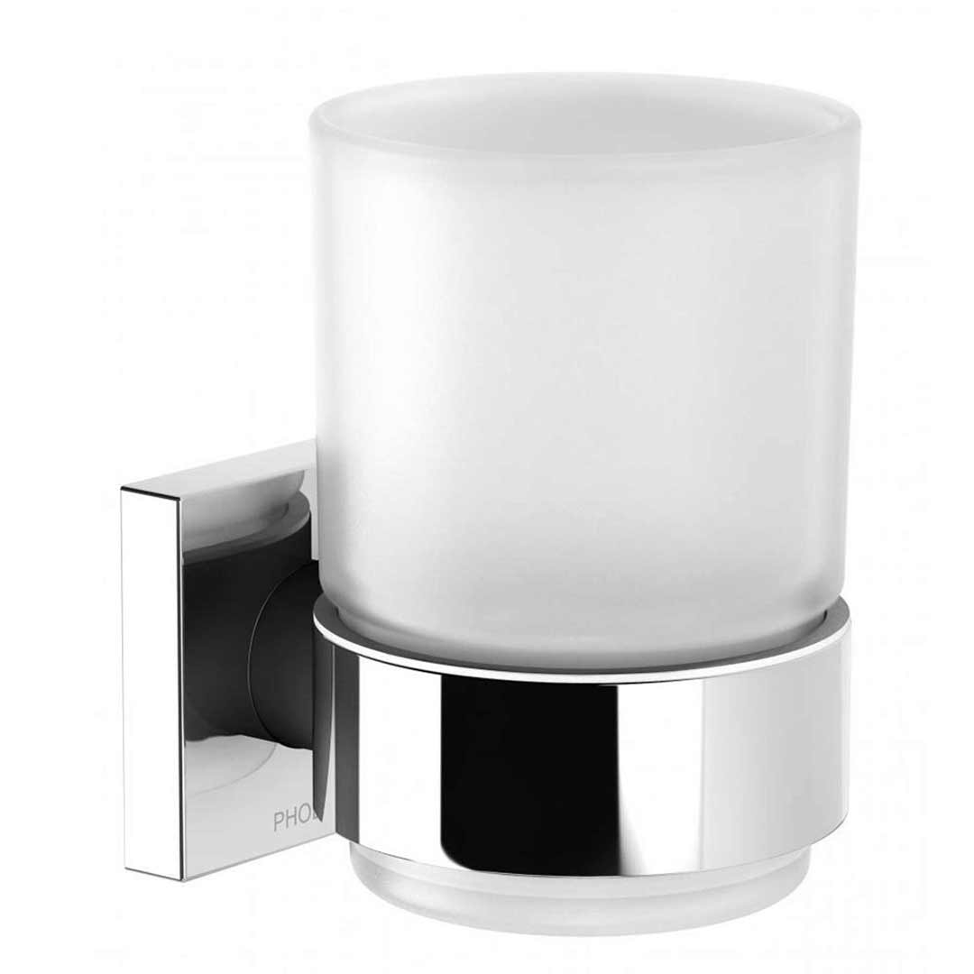 Phoenix Tapware Tumbler & Holder Frosted Glass Square Plate Metal Chrome RADII RS50700C