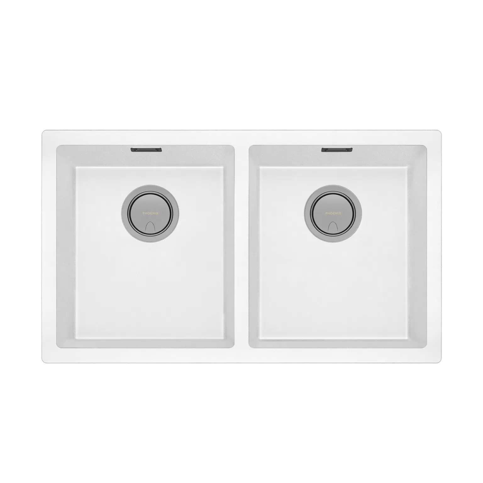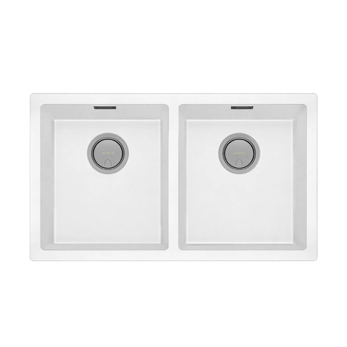 Matte White Double Bowl Kitchen Sink Quartz & Resin Phoenix Tapware 5000 Series 312-2002-80