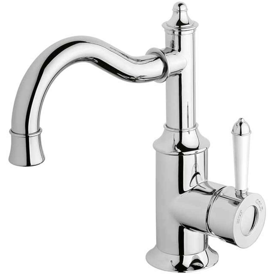 Phoenix Tapware Basin Mixer Bathroom Tap 160mm Shepherds Crook Chrome White Nostalgia NS748-62-1