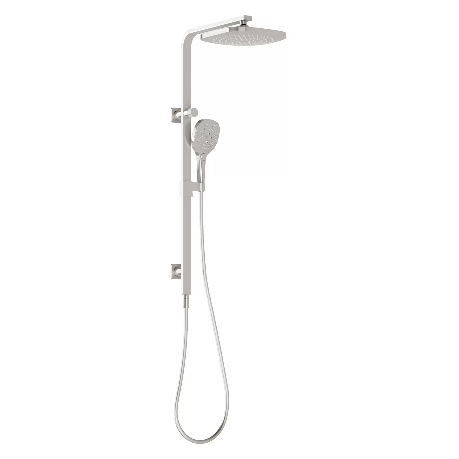 Greens Tapware Overhead Twin Rail Shower Multi Function Brushed Nickel Rocco 18790BN