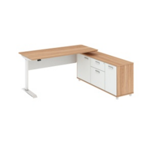 Potenza Electric Height Adjustable Desk Workstation with Return Virginia Walnut 2000mm x 1820mm