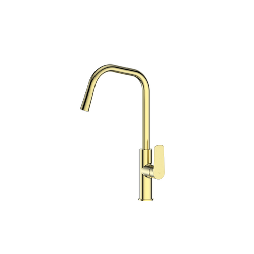 Pull Down Kitchen Sink Mixer Gooseneck Tap Brushed Brass Greens Tapware Novi LF24203542BB