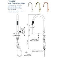 Pull Down Sink Mixer Kitchen Swivel Tap Brushed Copper Tesora Greens Tapware LF2130254BC