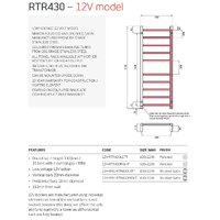 Radiant Heated Towel Ladder 430mm x 1100mm 10 Bar Clothes Towel Rail Chrome 12V-RTR430