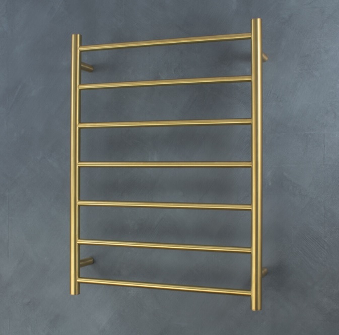 Radiant Heated Towel Ladder 600mm x 800mm 7 Bar Clothes Towel Rail Brushed Gold GLD-RTR01