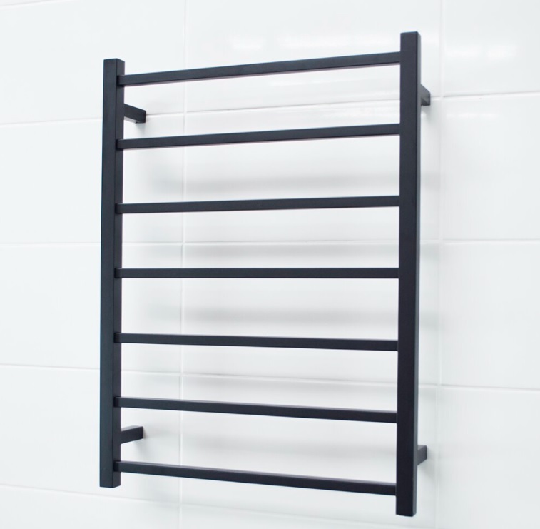 Radiant Heated Towel Ladder 600mm x 800mm 7 Bar Clothes Towel Rail Matte Black BSTR01