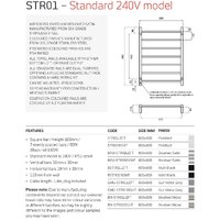 Radiant Heated Towel Ladder 600mm x 800mm 7 Bar Electronic Clothes Towel Warmer Chrome STR01