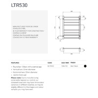 Radiant Towel Ladder 530mm x 700mm 8 Bar Clothes Towel Rail Matte Black BLTR530 Non Heated