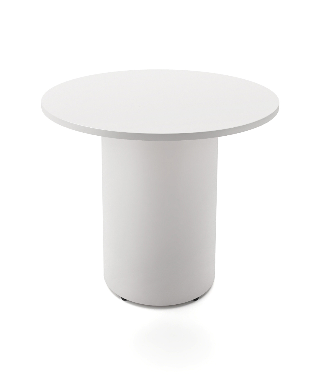 Rapidline 900mm Round Meeting Table Drum Base Melamine White DBT900 NW/WS