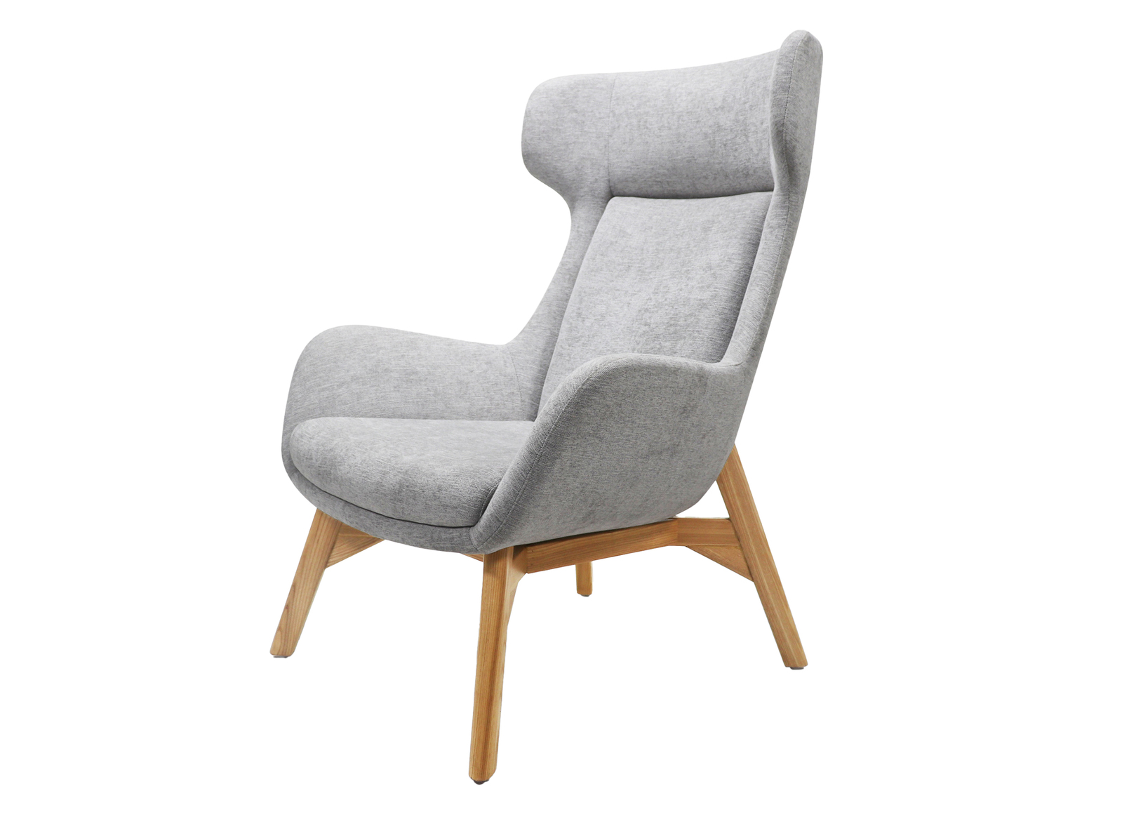 The Calypso Wing Back Lounge Chair exudes elegance and durability. Featuring a white Ashwood timber 4-leg base with a clear coloured anti-scratch treatment, and a light grey fabric upholstery to add a modern touch to your lounge space.