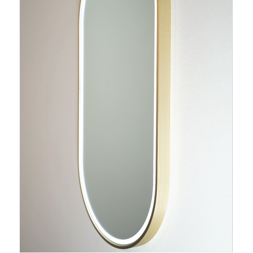 Remer LED Bathroom Mirror with Demister Gatsby Brushed Brass Frame 900mm x 4500mm G4590D-BB