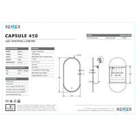 Remer LED Bathroom Mirror with Shaving Cabinet 900mm x 4500mm Capsule 450 CR45D