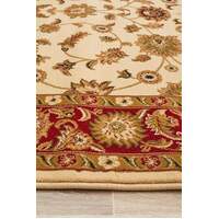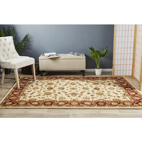 Rug Culture Classic Flooring Rugs Area Carpet Ivory with Burgundy Border 400x300cm