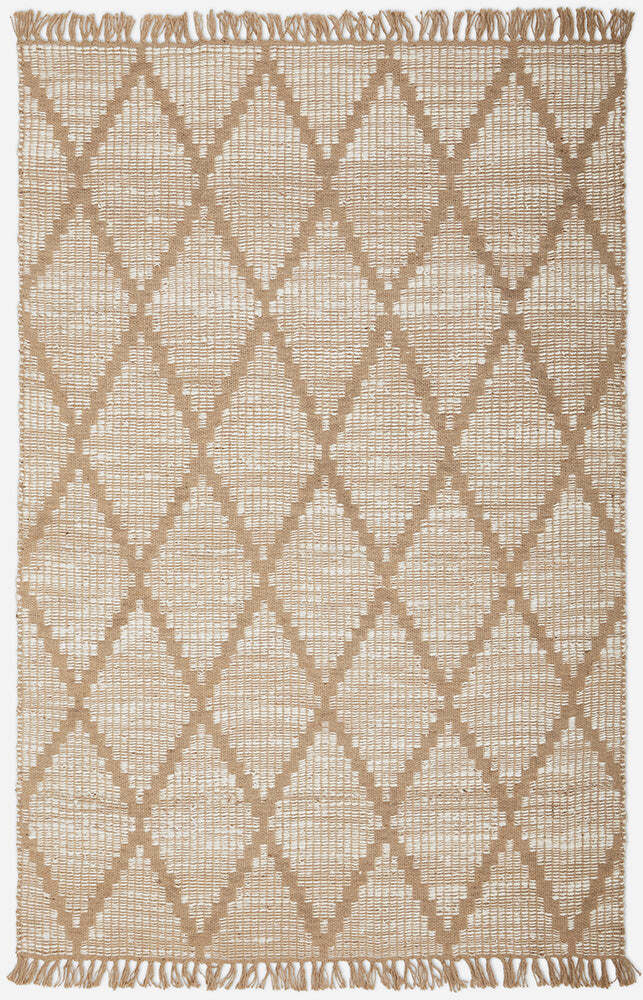 The Bali Natural rug embodies contemporary elegance with its modern design and sustainable jute material. Its off-white and natural tones add a touch of versatility, making it a perfect fit for both Hamptons and bohemian styles. The rug's beautifully textured surface showcases a stunning diamond pattern, adding visual interest and depth to any space. Delicate fringe details on the ends of the rug bring a sense of refinement and artistry. Crafted from sustainable jute, this rug not only enhances your decor but also reflects your commitment to eco-friendly living. Experience the perfect blend of modern sophistication and natural charm with the Bali Natural rug.