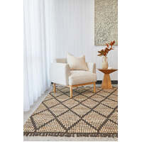 The Bali Mocha rug is a stunning contemporary piece that embodies modern design while showcasing sustainable materials. Featuring a harmonious blend of chocolate and natural tones, this rug adds a warm and inviting touch to any space. Its beautifully textured surface showcases a mesmerizing diamond pattern that catches the eye and adds visual interest. Delicate fringe details on the ends of the rug further enhances its elegance. Crafted from sustainable jute, this rug is not only a stylish choice but also an eco-friendly one. The Bali Mocha rug is the perfect addition to any space, infusing it with contemporary style and a touch of natural elegance. Features: Material: Jute Pile Construction: Handwoven Pile Height: flatwoven Origin: Made In India IMPORTANT TIP: We recommend that an anti-slip pad such as Total Grip is used underneath rugs to prevent slippage between the rug and the surface it is placed on. Please note: Allow for a slight variation of colours depending on monitor settings. This item cannot be delivered to a PO Box, only to a street address.