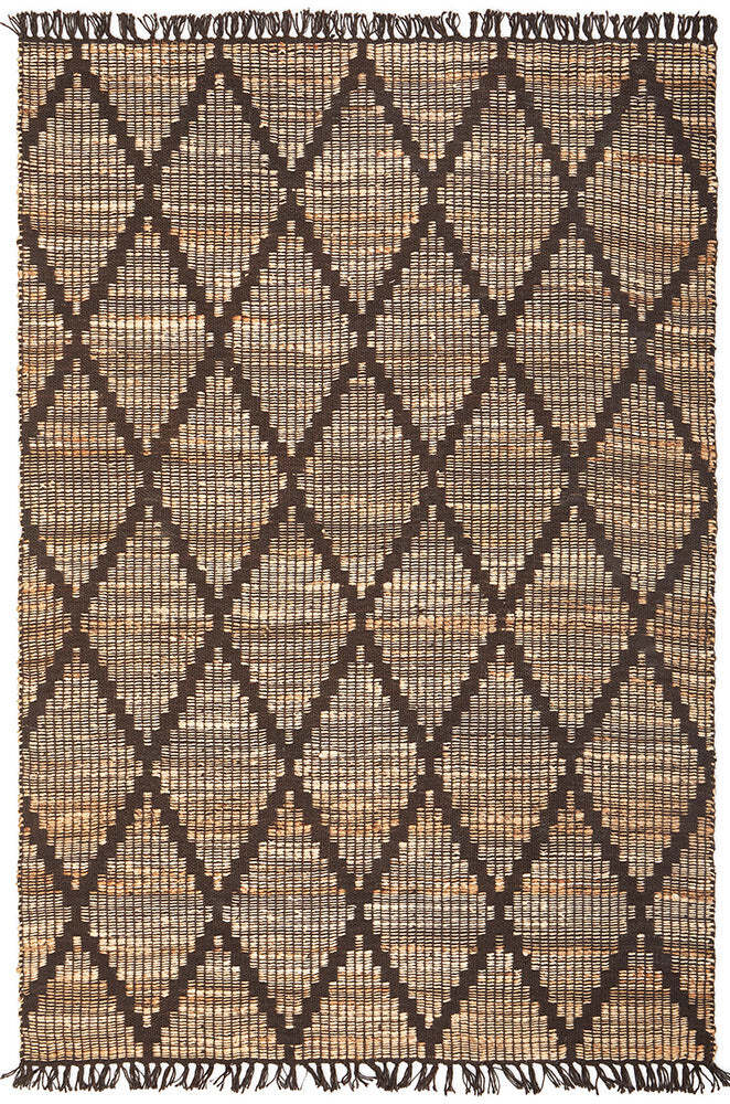 The Bali Mocha rug is a stunning contemporary piece that embodies modern design while showcasing sustainable materials. Featuring a harmonious blend of chocolate and natural tones, this rug adds a warm and inviting touch to any space. Its beautifully textured surface showcases a mesmerizing diamond pattern that catches the eye and adds visual interest. Delicate fringe details on the ends of the rug further enhances its elegance. Crafted from sustainable jute, this rug is not only a stylish choice but also an eco-friendly one. The Bali Mocha rug is the perfect addition to any space, infusing it with contemporary style and a touch of natural elegance.