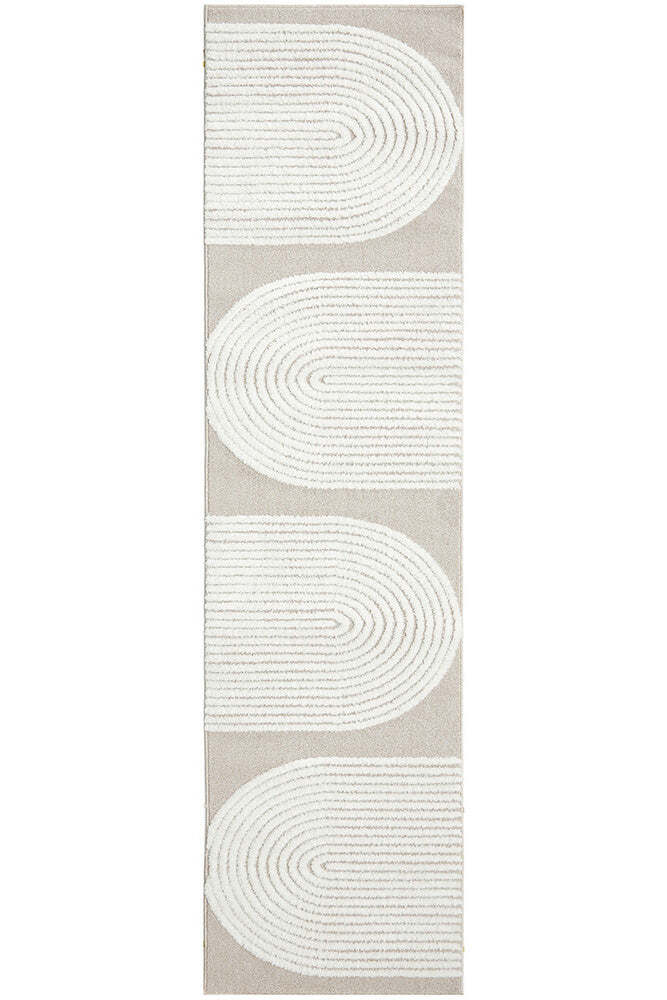 The Lotus Abbey rug presents a modern masterpiece, where design and function converge to create a visually stunning statement. Featuring curved arches articulated through precise high and low pile details, this rug infuses any room with a touch of sophistication. Its subtle interplay of texture enhances the rug's elegant lines, making it a perfect complement to neutral, modern, or contemporary decor. Available in beige, white, and a harmonious mix of both, the Lotus Abbey rug offers versatility and style, becoming a focal point that gracefully anchors any interior space.