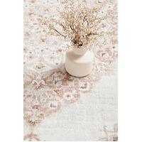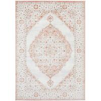 Emotion is a truly stunning transitional piece with a beautiful blend of soft blush peach and ivory hues, topped with ornate floral patterns and an intricate diamond design. Duly constructed in Turkey using modern power-looming techniques and silky-soft polyester yarn, one can be assured of a perfect balance between comfort and durability. This synthetic rug has been engineered to be stain resistant and non-shedding, making it an amazing low-maintenance pick for family or pet homes.