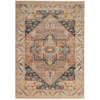 Indulge in this one of a kind rug from the famous Legacy collection. The Legacy Salmon rug highlights a fusion of Aztec patterns and contemporary scheme. With bright orange, red and dark tone, the piles chic further amplifies with ornamental figure surrounds and ensures durability via serge edges. This faded Persian-inspired design is crafted in Turkey from 100% polypropylene, which is naturally designed to stand up to dirt and debris in the entryway or the occasional spill under the kitchen table.