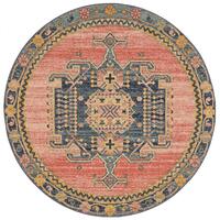 Shower your space with rustic appeal when you lay down this wonderful rug. Crafted from 100% polypropylene by skillful masters from Turkey, this Persian inspired rug features a distressed medallion center surrounded by geometric figures and botanical accent. It is detailed with faded ensembles and accents of rust and dark tone. Durability wise, it can stand up to high-traffic and can handle sun exposure.