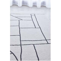 Rich with a modern design fixture the PARADISE FLEUR is a must have rug for any living room setting. Power loomed in Turkey, this rug features an off-white background underneath a black geometric pattern and a 10 mm pile, soft texture finish to make it a diverse addition to any living space. The design features a range of geometrical shapes, however the accompanying curved lines create a balanced pattern.