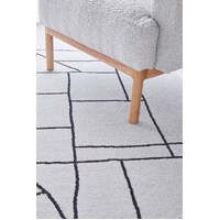 Rich with a modern design fixture the PARADISE FLEUR is a must have rug for any living room setting. Power loomed in Turkey, this rug features an off-white background underneath a black geometric pattern and a 10 mm pile, soft texture finish to make it a diverse addition to any living space. The design features a range of geometrical shapes, however the accompanying curved lines create a balanced pattern.