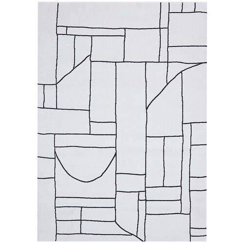 Rich with a modern design fixture the PARADISE FLEUR is a must have rug for any living room setting. Power loomed in Turkey, this rug features an off-white background underneath a black geometric pattern and a 10 mm pile, soft texture finish to make it a diverse addition to any living space. The design features a range of geometrical shapes, however the accompanying curved lines create a balanced pattern.