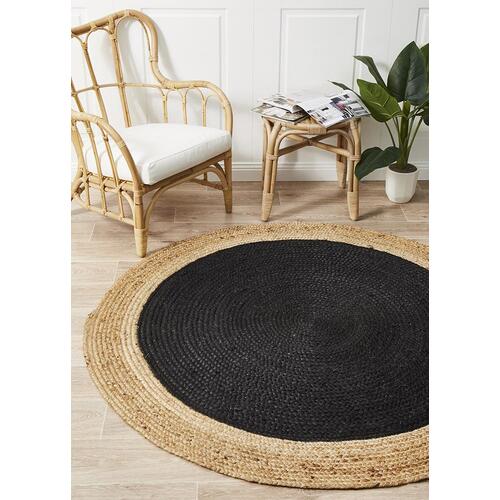 Rug Culture Round Jute Natural Flooring Rugs Area Carpet Black 200x200cm