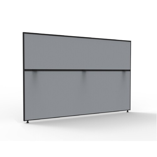 The SHUSH30 screen range features a 30mm slimline screen with a square profile, powder coat frame and a full fabric pinnable surface with adjustable leveling feet.