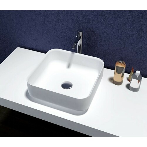 Avia Bathware Group Solid Surface Basin Marble Stone Above Counter Square Matt White Bliss SI-M18