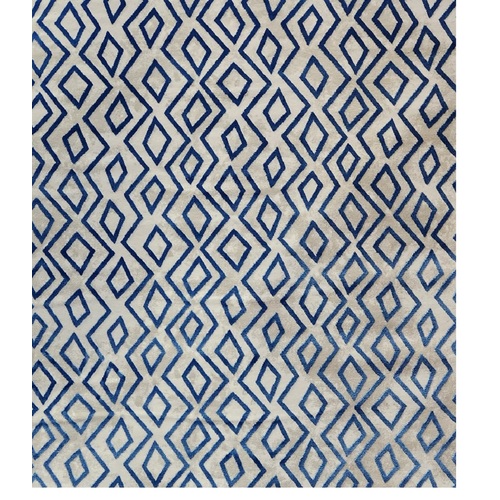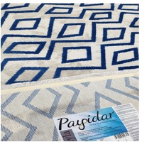Extra soft polyester rugs easy to clean with Moroccan Motif designs in beautiful blue and grey tones.