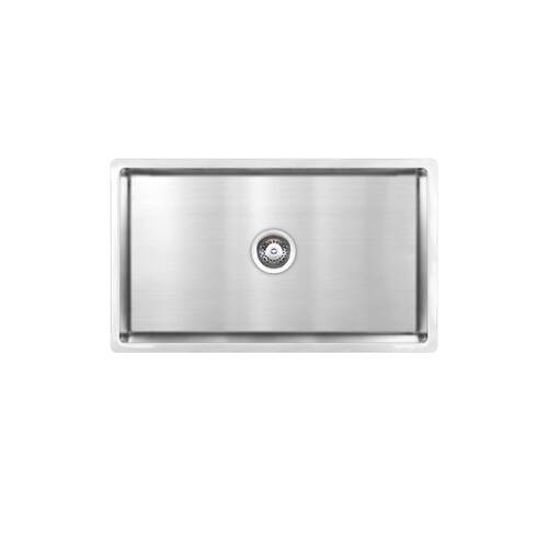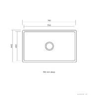 Dimensions: 740 x 440 mm, 190 mm deep Type / mount: Abovemount or undermount Material: Stainless steel Thickness: 0.8 mm thick Finish: Silk Colour: Stainless steel Capacity: 54 litres Waste size: Includes 90 mm basket waste Warranty: 30 years Overflow: Overflow option
