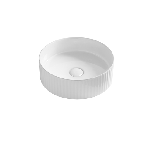 Seima Above Counter Basin Fluted Ceramic 360 x 360mm Round Bathroom Vanity Gloss White Cleo 360 192938