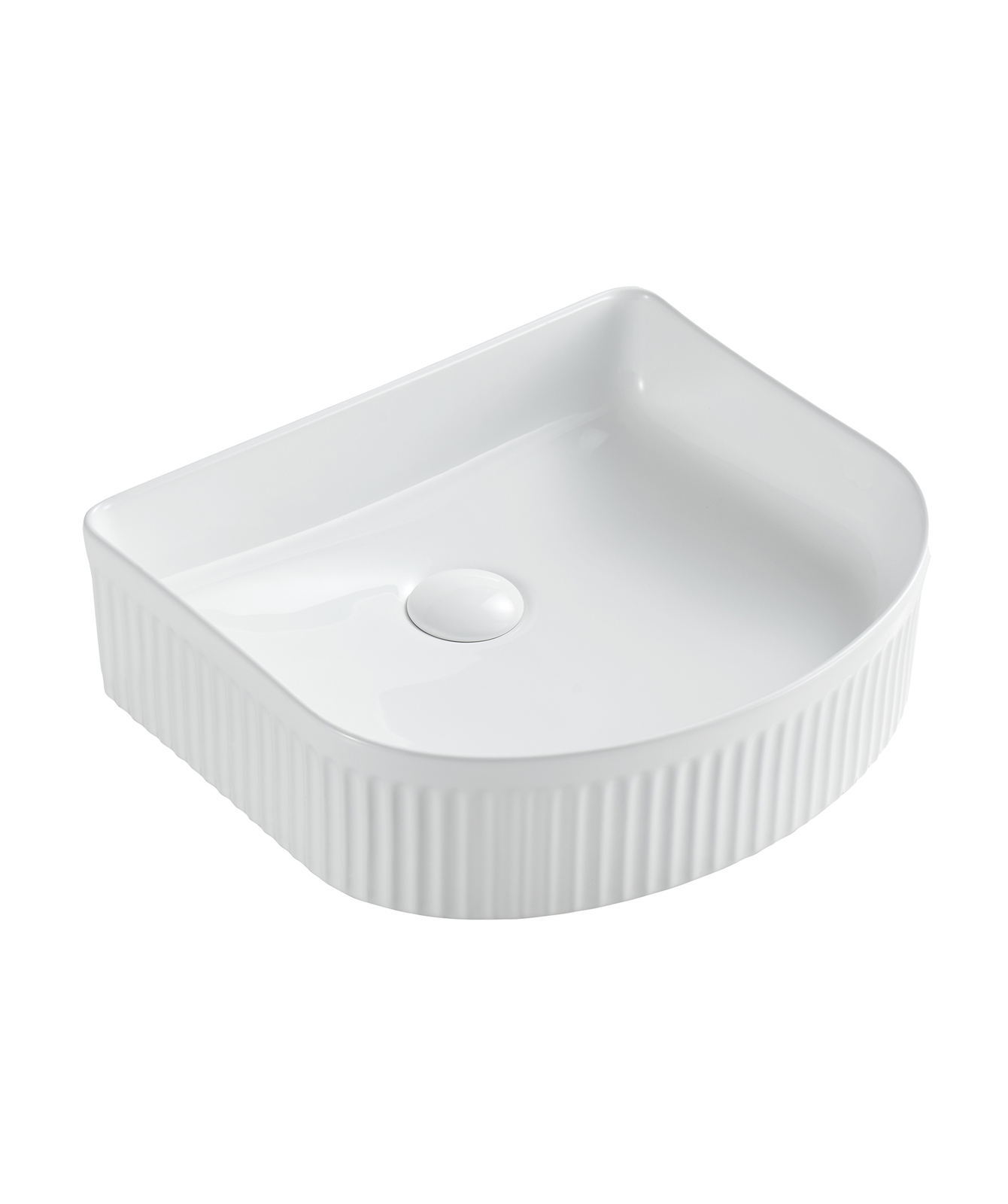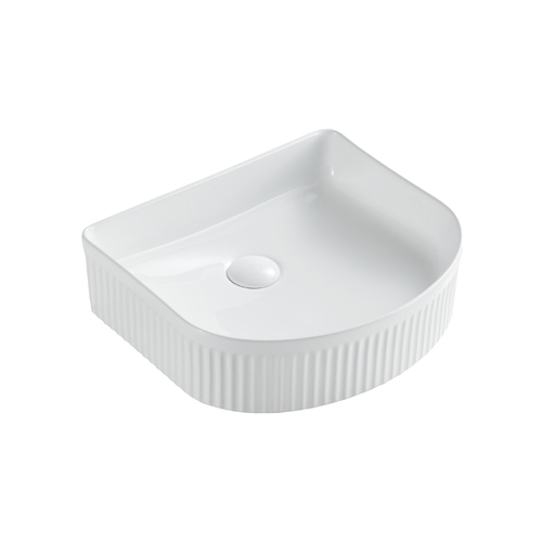 Seima Above Counter Basin Fluted Ceramic 415mm x 365mm D-shaped Bathroom Vanity Gloss White Cleo 410 192616