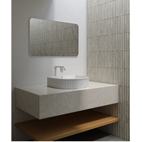 Seima Above Counter Basin Fluted Ceramic 415mm x 365mm D-shaped Bathroom Vanity Matte White Cleo 410 192617