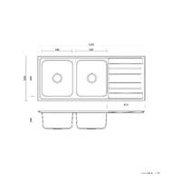 Dimensions: 1200 x 500 mm, 200 mm deep Type / mount: Abovemount Material: Stainless steel Thickness: 0.8 mm thick Finish: Silk Colour: Stainless steel Waste size: Includes 90 mm basket waste Warranty: 30 years