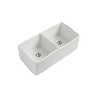 Seima Duo Fluted or Flat Apron Front Sink 835mm Fireclay Ceramic Double Bowl Butler White Sinks Cleo 835 192757
