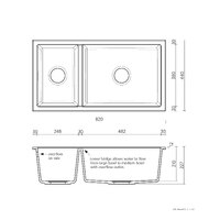 Dimensions: 820 x 440 mm, 210 mm deep Type / mount: Abovemount or undermount Material: Arqstone Finish: Arqstone Colour: White Warranty: 30 years Overflow: Integrated overflow Tapholes: No taphole