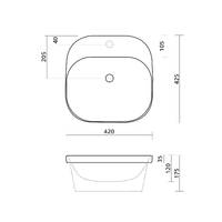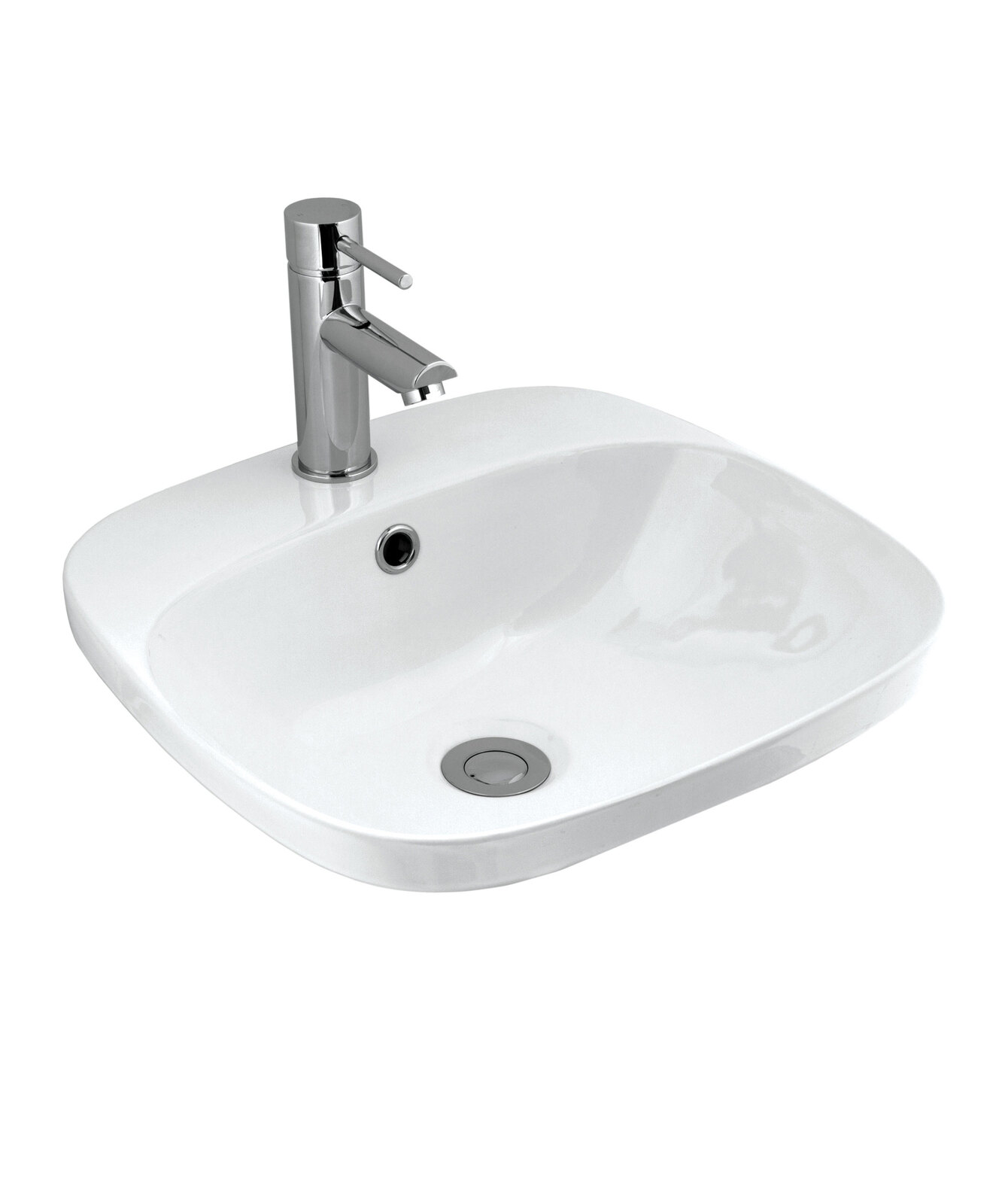 Seima Semi Inset Ceramic Basin 420mm x 425mm Rounded Square 0TH with Overflow Gloss White LIMNI 420 191134