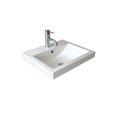 Seima Semi Inset Ceramic Basin 550mm x 460mm Rectangular Low Profile 1TH with Overflow Gloss White KYRA 016 191444