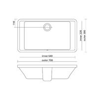 Seima Under Counter Ceramic Basin 700mm x 380mm Rectangular with Overflow Gloss White PLATI 700 192974