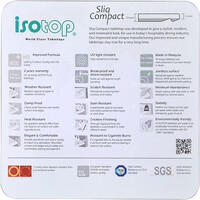 We are the importer of ISOTOP so you are buying from the wholesaler direct. These table tops are durable and economical. Scratch heat and stain resistant they will out perform melamine and will not peel. They are great for cleaning and are water resistant and UV treated so can be left outside. They come in various colours and shapes and all have a 1 year commercial warranty.