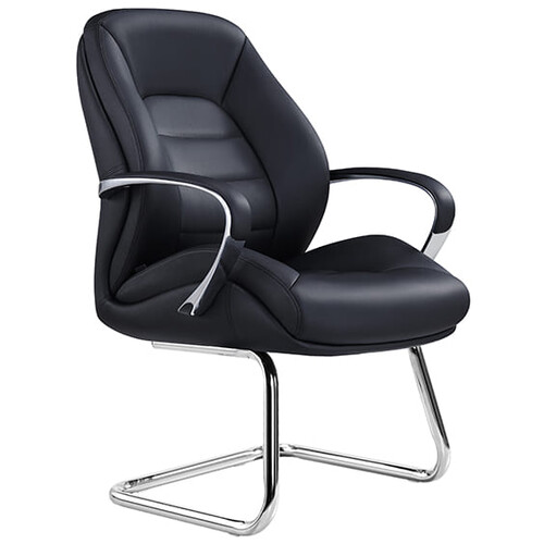Style Ergonomics Leather Boardroom Executive Seating Med Back Visitors Chair Black MAGNUM-VC