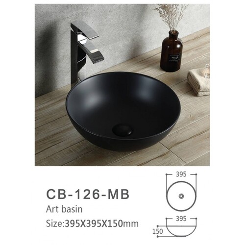 Avia Bathware Ceramic Basin Above Counter Round Matt Black CB-126-MB