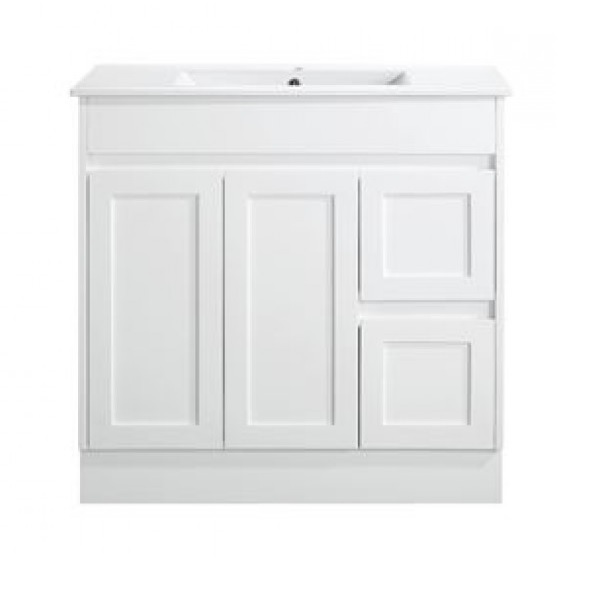 Avia Bathware Quin Series 900 Freestanding Bathroom Vanity Matte White with Ceramic Top SK76-900WM-SD