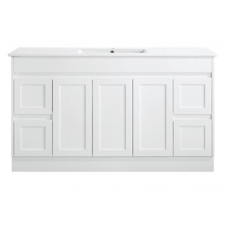 Avia Bathware Quinn Series 1500 Freestanding Vanity Matte White with Ceramic Top SK76-1500WM-SD